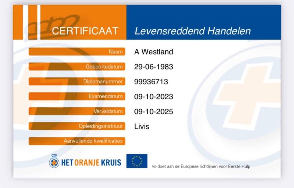 (M) aatje is vanaf nu ook in het bezit van een EHBO certificaat!